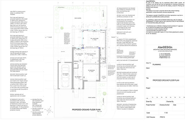 We will conduct a laser-measured survey of the current structures, gathering precise measurements and details such as the location of existing drains and property boundaries. The data collected will be transferred into AutoCAD, which will serve as the foundation for the design work and fulfill the necessary requirements for planning and building regulations approvals.